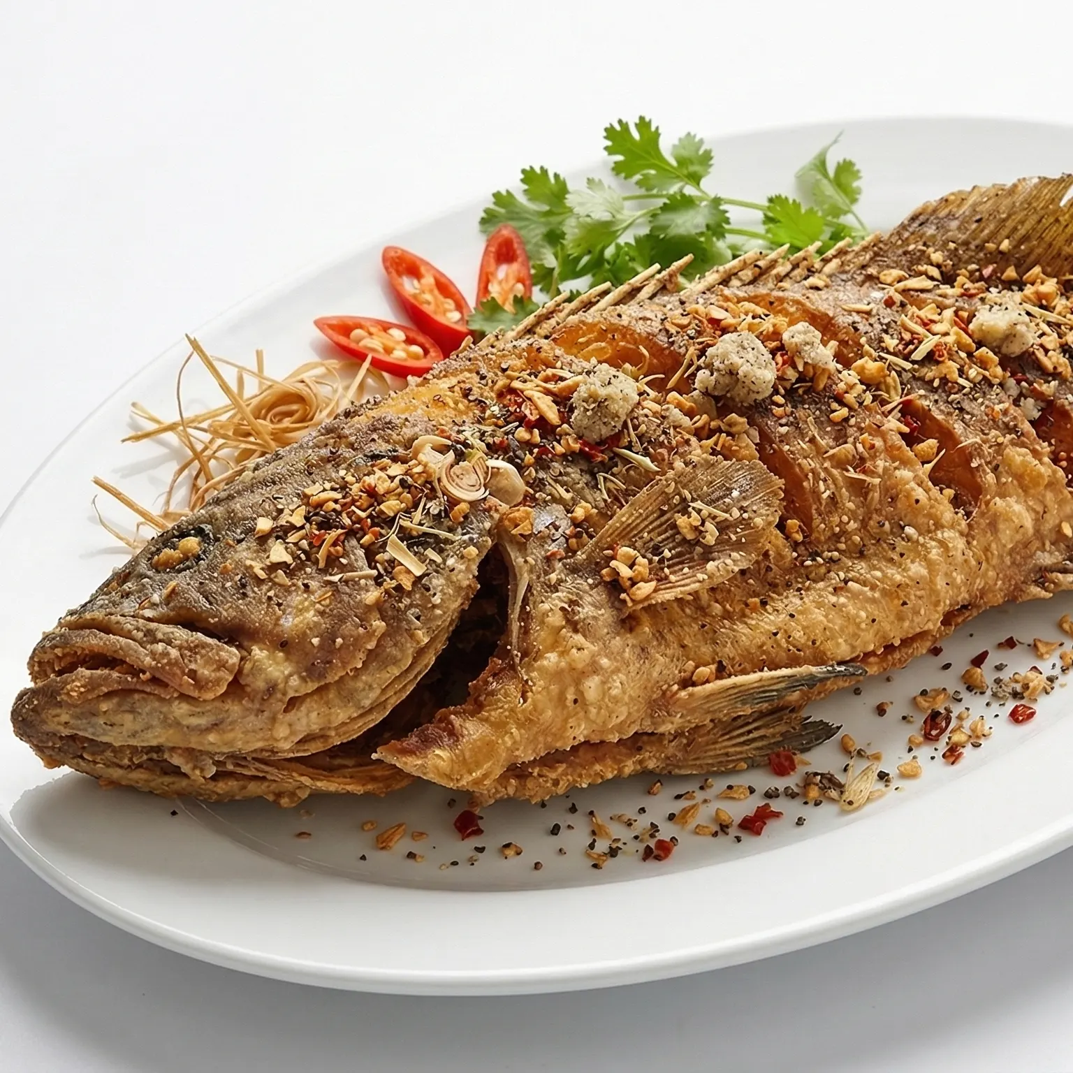 Cá mú đen muối sư chiên